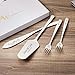 Durable Stainless Steel: The Mirror Polish Silverware Set will stand out on your tabletop. They are beautiful and great that You will get a lot of "like", "praise", "laud" from your guests when you dinning together, from your funs when you share a video shot of your dinning. This is the just silverware that you worth to have.