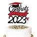 PACKAGE INCLUDES: 1 Pack Congrats class of 2023 Cake Topper with 30 pcs graduation cupcake toppers. This congrats class of 2023 cake topper is made of high quality double sided black sparkle cardstock with food grade paper sticks.Graduation cupcake topper is made of single sided black/red/white glitter cardstocks.