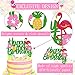 🌸 ASSEMBLED IN ADVANCE & GREAT SIZE: Flamingo Pineapple birthday cake topper is pre-assembled. No need to diy by hand. Brings you convenience. Flamingo theme happy birthday cake topper is about about 7.3” wide x 5.5” in length. The food grade paper stick is about 7.75”.