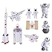 Package Included: white astronauts x 6, white rocket x 6, blue stars x 6, silver planets x 6. Blue little astronauts x 1, blue rocket x 1, blue spaceship x 1, blue planet x 1. Total 30pcs.