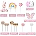 🐰 FULLY ASSEMBLED - All rabbit cake decoration comes handmade assembled.Unique & sparkly cake topper is cute for cupcake,cake,fruit,food,dessert,appetizer,donut and more.Perfect size,Bright,glitter,Your baby absolutely loves them,lovely colors and a real hit at the party.