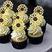 Package-24 pieces cupcake toppers in sunflower design.