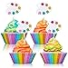 Classic Drawing Design - Shaped with drawing plate in glittery pink, blue, yellow, orange, rose red and green, shiny and delicate, making your cupcake look more delicious, and the design of our cupcake toppers are double-layer bonding.