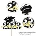 💖【Upgrade Quality】: 1Pc Congrats 2023 Cake Topper is made of 300g glitter card stock and 100% food grade bamboo stick, not easy to deform and fade, smooth edges without burrs, makes these Graduation birthday Cupcake Toppers give you a wonderful visual enjoyment. It is durable enough for long lasting use.