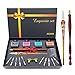 【Quill Pen Ink Set Includes】: 1x Quill Pen, 1x Glass Dip Pen, 1x Wooden Dip Pen, 1x Depicting Stamp Pen, 6x Bottle Ink (6 colors: Black, Red, Brilliant Brown, Purple, Blue, Green), 1x ink cup, 17x stainless steel pen nib in different sizes, 1x bottle fire paint wax, 1x 2-in-1 engraved pen holder, 1x Candle, 1X Stamp, 1x wax melting spoon, 8x letter paper, 1x Envelopes, 1x open envelope tool, 1x exquisite premium gift box (bow ribbons tied by hand, expressing our sincerity).