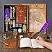 【FEATHER PEN NOTEBOOK SET】Quatle pen ink set includes: Quill Pen, Notebook, Ink(black), Cup, 2-in-1 Pen Holder, 5 Stainless Steel Nibs Of Different Sizes, Stamp Seal "Gear Clock"Pattern, Wax Beads, White Wax, Spoon, Envelope Open Tools, Envelopes And Writing Paper, Beautiful Vintage Globe Design Boxes.