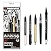 The pens provide a variety of 4 line widths: B = brush nib, 1.5 = 1.5 mm bullet nib, C = Calligraphy nib in white, S = 0.3 mm in black.