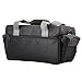Dual zippered side pockets accommodate additional accessories. Padded handle and adjustable shoulder strap included.
