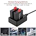 【Fast Charging】 This action camera battery charger design is convenient to charge 2 batteries at the same time, saves charging time efficiently.The battery charger RED light shows that the battery is charging, BLUE light shows that the battery is full charged or no battery in charging.