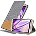 DESIGN : Trendy „Book-Style“ design in Jeans-Look with Fauxleather application. There is no annoying flap or closure so your are able to open and close the case from whichever way you want. Its well-chosen Fauxleather and its luxurious colors make this case ideal for a serious appearance. The flap won´t interrupt you while texting or telephoning. The interior surface of this beautiful flap case is made out of the smooth faux leather to provides extra protection.