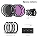 【49mm Complete Lens Filter Kit】The lens filter accessory kit includes multiple kinds of filters and lens hood accessories to deliver different effects: UV/CPL/FLD filter, ND2/4/8 filter, close up filters (+1, +2, +4, +10), tulip flower lens hood, collapsible rubber lens hood, lens cap, carrying pouch, safety tether, and lens cleaning wipe. Compatible with all 49mm lens thread (marked with the "Φ49" symbol under lens barrel), regardless of camera models