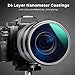 【24 Multi-Layer Coatings】Both sides of glass with nanometer coatings, effectively prevent from oil, fingerprint, protect valued lens
