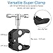 POWERFUL SUPER CLAMP- Comes with standard 1/4"and 3/8" thread for various configuration. Can be mounted virtually anywhere, can fix onto any shaped body like cameras, lights, umbrellas, hooks, shelves, plate glass, cross bars,etc. Ideal for clamping items 0.6"-1.73" in diameter.