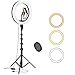 【 Dimmable Large Size Selfie Ring Light 】12” circle light with 162pcs LED beads, it’s more bigger and powerful than others 8” or 10” ring lights. Featuring 3 light colors (Cool, Natural and Warm) and 10 brightness levels in each color, ensuring you can achieve a desired brightness under different occasions. The ring light with stand can provide a great lighting effect on your daily life, such as live streaming, makeup, Zoom Meetings, selfie, video recording, photography, interviews etc.