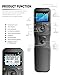 Multiple time settings can be accessed from the transmitter's backlit LCD screen, such as the ability to set a number of shots from 1-999 or to infinitely take photos. The duration of an exposure can also be set all the way up to 99 hours 59 minutes and 59 seconds in one-second increments