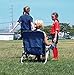 Sun shade canopy adjusts from front-to-back and collapses when not in use; built-in beverage holder keeps drinks nearby