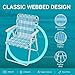 Webbed Fabric & Vintage Style- The lawn chairs for outside features perfect height 15.7 in (not too high or low)for easy sitting and standing up, solid and breathable webbing fabric and roomy seats, providing you with more comfort. Vintage looks give you nice feeling.