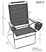 Dimensions: open size: 20.5 in. W x 16.5 in. D x 38 in. H/folded size: 33 in. H x 25.2 in. W x 3.5 in. D/seat off ground: 16 in./seat width: 20.8 in/seat back height 22.3 in.