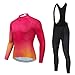 Cycling jersey sets for 50-60F(0C)riding,you should need layer underneath in cold winter weather.Package include cycling tops jersey and pants,Wash with room temperature water,Hand washing or machine(Put in wash pocket when wash in machine) Do not brush or bleach, Please cool iron