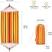 Space-Saving Roll-up Design: When not in use, the hammock can be quickly rolled in to a much compacter size, which makes it effortless to store and carry. Apart from that, with colorful appearance and high durability, this hammock is ideal for all kinds of outdoor occasions, such as backyard, poolside, seaside and camping.