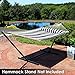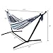 ATTRACTIVE LOOK – Yarn-dyed fabric with complementary blue and white stripes gives this hammock with stand included an attractive look. The sturdy steel frame boasts a basic black powder coating for long-term beauty in the great outdoors.