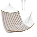 【Ultimate Comfortable】: The double hammock is tightly woven with colorful cotton and polyester fabric for durability and ultimate comfort that will not stretch or rip under pressure. The thicker and tighter woven cotton hammock spreads your weight in the center, while the fabric on both sides softly wraps you, and enjoys gravity-free relaxation. It provides great support and comfort. Amazing for your back! Perfect for lounging and creates tranquil ambiance, achieve a new level of comfort!