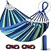 【High Quality Double Hammock】The double camping hammock made of cotton canvas, load Capacity Up to 450 Lbs, enough to accommodate two adults. Hammock display size: 98 inches long x 59 inches wide, bed size: 73 inches long x 59 inches wide. The hammock can be used in a hammock stand or tree with a length of 8.5-10 feet.