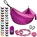 ✔ Premium Quality - Built to last a lifetime, our durable camping hammocks are crafted with soft and strong premium parachute nylon and triple interlocking stitching, along with heavy duty carabiners and tree friendly hammock straps