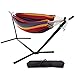 STEEL STAND INCLUDED – Forget the hooks and rope at home, the included hammock stand is made of powder-coated steel that is rust-resistant, holds up to 400-pounds, and assembles in minutes, without tools.