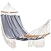 Classic Design: The hammock is made of hand-woven with pure cotton rope, which is comfortable and durable to use. The tightly woven mesh is not only classic and beautiful, but also increases breathability and enhances body comfort.
