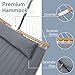 PORTABLE &EASY TO ASSEMBLE:Our hammock comes with a free carry-on bag, 2 hooks. 2 strapes, which is convenient for travel、hiking. It can also be easily folded into a compact size and tucked into your own drawstring bag with all accessories.