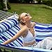 [Fresh Summer Vibe]: Gone are the tedious and boring hammocks with stand! Let this hammock with bright stripe pattern jazz up your summertime. Chill at the beach, nap at the patio or sunbathe in the backyard, it can easily add a pop of color to each place