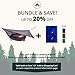 COMPLETE HAMMOCK SUSPENSION. This camping gear comes with everything you need. It includes an 11ft hammock bed, overhead organizer, adjustable UHMWPE ridgeline, lantern hanger, durable cinch buckles, and tree straps. All accessories can easily be packed and compressed in the matching stuff sack for mobility and easy storage.