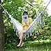 [High quality boho hammock] This white hammock is made of 80% sturdy cotton and 20% polyester fiber. High quality construction ensures this hammock will never tear or break with regular use