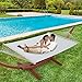 Comfortable, stylish hammock with pillow: This cozy hammock includes a comfortable pillow made of polyster cover and a poly filling. The hammock is made from durable UV-resistant polyester rope and features hardwood spreader bars.