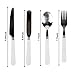 Silverware kit includes 4 plastic-handled forks, spoons, and knives in a roll-up pouch
