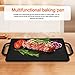 Reversible Design: One baking pan, both sides can be cooked, the ribbed side is used for grilled foods, such as steaks, lamb chops, fish and chicken; the flat side is used for pan cakes, toast bread, hamburgers, tortillas, fajitas, eggs, bacon, hot dogs, luncheon meat, minced meat, scallops, shrimps, veggies. Versatile and multipurpose grill pan perfect for indoor or outdoor BBQ, you can prepare food for family and friends wherever you go, enjoy different styles of delicious and frying fun