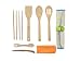 Includes: 7 piece bamboo utensil set with spoon, slotted spoon, spatula, double sided spoon/fork, chopsticks (2 sets), knife, and microfiber towel