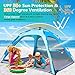 Backpacking Friendly & Easy to Use: The pop-up beach tent folds down to a travel size of 35"x 6"x 6", weighs 9.15lbs, and comes with a carry bag for pourable transportation and store. 4 Storage Mesh Pockets can offer a sand-free oasis for electronics, books, and baby items. A hook on the top is perfect for a small fan or a light at night. It is a practical choice for overnight beach camping, fishing trips, or festival camping, as well as sunny days at the beach.