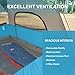 【Breathable and Ventilation Design】: The camping tent has 1 large mesh door and 4 mesh windows. The top canopy design allows for maximum ventilation and light, ensuring a comfortable experience while taking in the beauty of the outdoors.