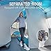 【Spacious & Private】 The 8-person instant cabin tent is 13ft x 9ft and fits two queen-size mattresses easily with plenty of extra space, you are able to move around more freely with a peak height of 78 in with a peak height of 78 in. The included room divider can divide this camping tent into two private sleeping areas or a bedroom and living space, which have added privacy to a point when you want.