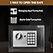 [2 Ways to Unlock] : One is the manual key + knob. (When you use the safe for the first time, you can only remove the lock cover and open the safe with the key. Remember to keep the key in a safe place outside the safe and do not lock it in the box). The other is the personal password/master password + knob. Please press the reset button which is behind the door.And you will hear 2 beeps. Now you can input your own code(3-8digits) on the keypad. Then press the # button to confirm.