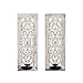 A medley of fleur-de-lis and scrollwork patterns adorn the outline of this crucifix-inspired large wall mounted candle holder that serves as background to 2 pillar candle holder, add a rustic yet refined charm to any home.
