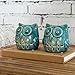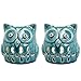 Set of 2 decorative owl design teal ceramic candle holders