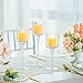 PACKAGE INCLUDES: 1 set glass tea light holder (3 Heights: 7.87"/ 9"/ 10.2"). Candles are not included. Each has a long stem and it is crystal clear so you can see your beautiful candles. These tall glass vases for centerpieces are decorative and functional.