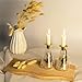 <b>Exquisite Details:</b> Metal candle holders are available in gold and silver, and brushed metal design is both retro and stylish. Due to the special hourglass design of the candlestick, when the candle oil overflows, it will drip onto the candlestick body instead of the table. The bottom of the candlestick has a velvet cloth to protect your furniture from scratches