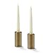 CHIC CANDLEHOLDERS: These modern metal candlestick holders feature an aged brass finish and fluted texture. | Dimensions: 2" D by 3" H. | Candle Hole Size 0.75”D.