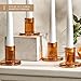 TAPER CANDLE HOLDERS - This 4 pack of candlesticks are made of amber-colored glass with a modern design. Holder Size: 2.6"L x 2.6"W x 2.6"H, Candle Size: 0.75" Diameter.