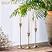 EXQUISITE DESIGN: They are golden brass color with a brushed metal design, vintage & extremely exquisite feel. They are slender, classic, heavy and with a good weight. This candle holder set combines aesthetics and practicality together,
