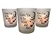 FROSTED CANDLE HOLDERS with BONUS INCLUDED 3 flameless white tealight candles. Use the flame less tea light candles included to light these cute, decorative candle holders up. You will be able to use them over and over again because you won't have a waxy mess to clean up. Or if you prefer to add your own scented tea light or votive candles, they will fit either size.